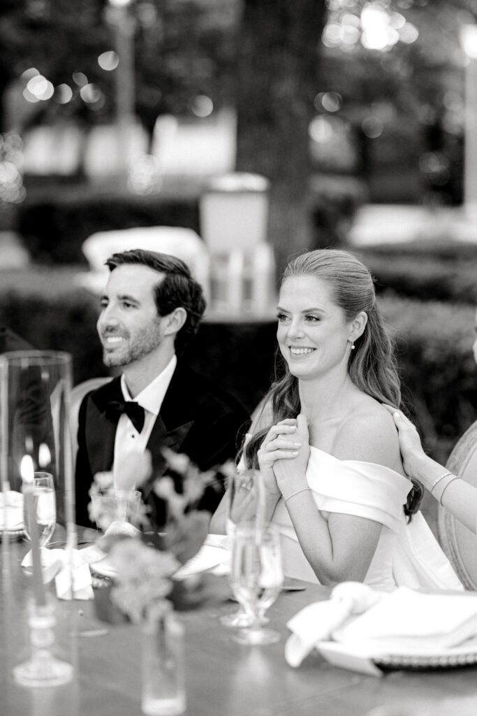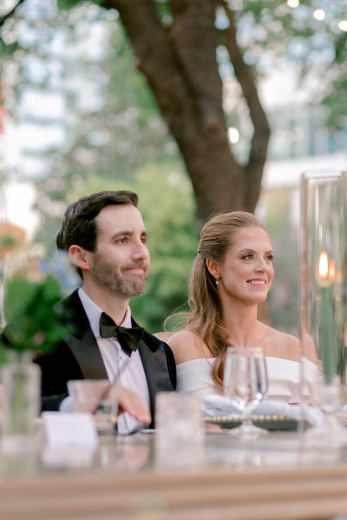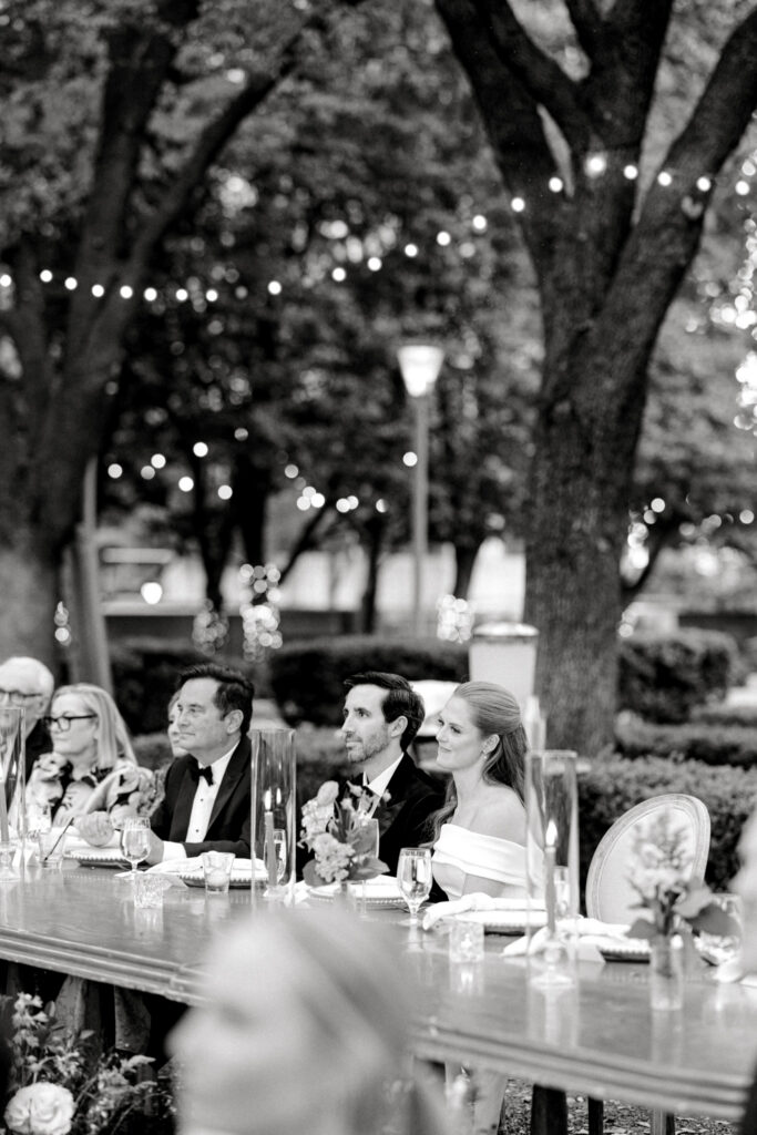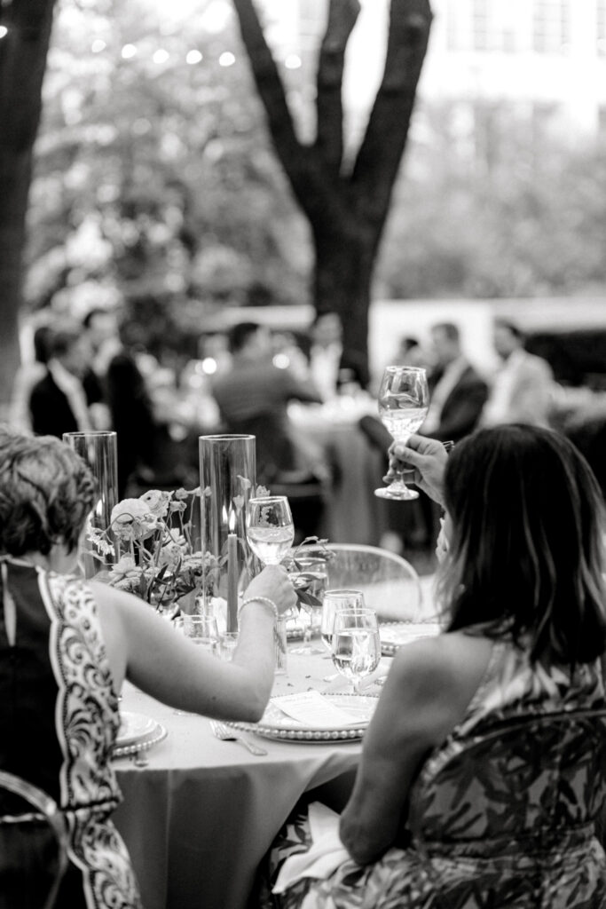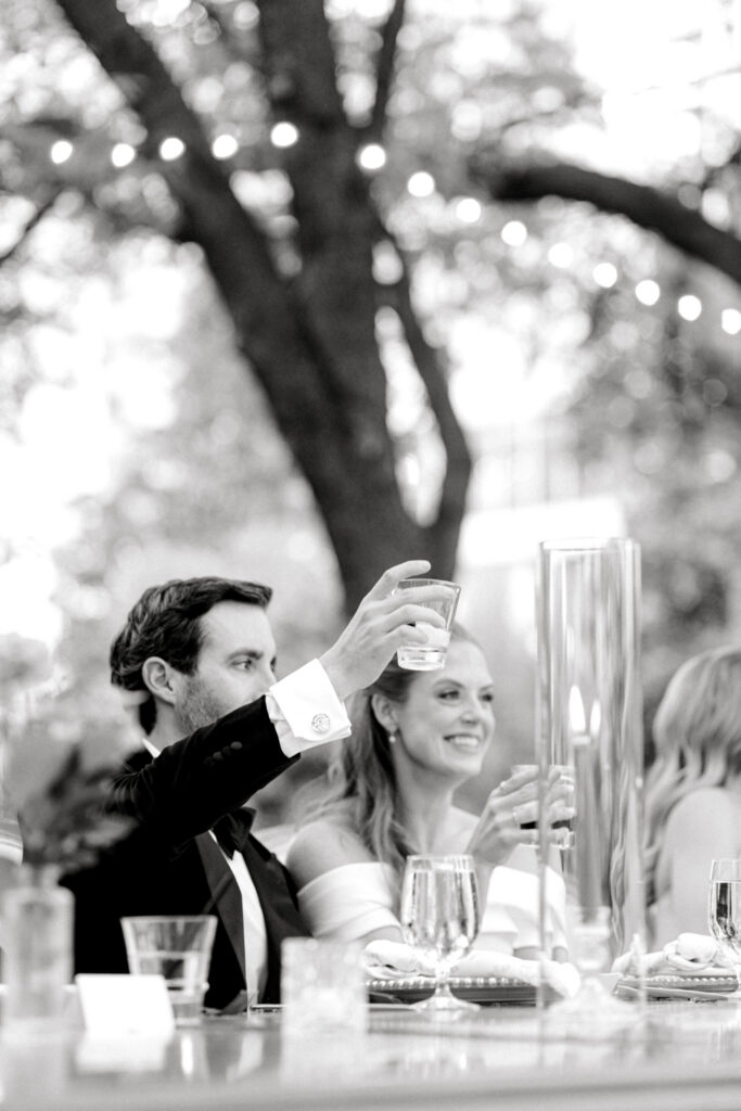 As the evening continued, guests gathered for dinner, conversation, and celebration. It was the kind of reception where nothing felt rushed – just a steady rhythm of toasts, laughter, and time spent together. Abbie and Chris were rarely far from each other, naturally returning to one another throughout the night.